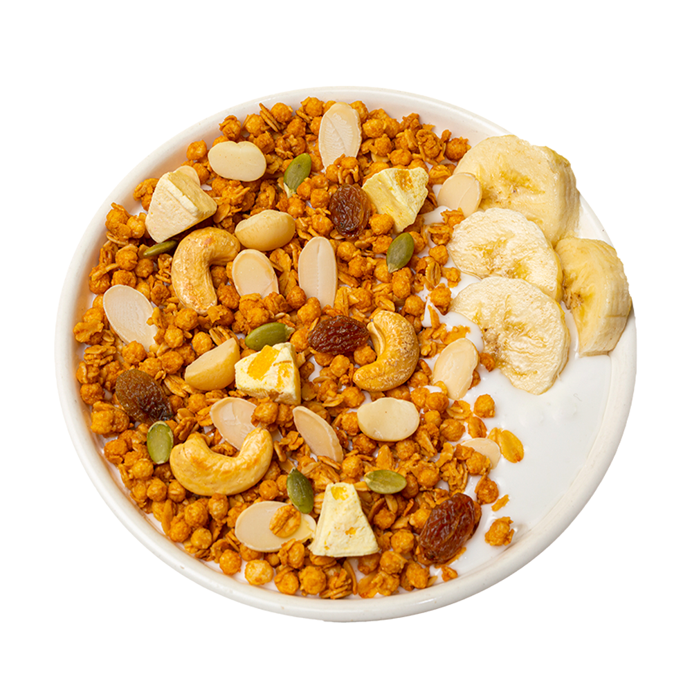 Granola là giải pháp bữa ăn sạch (Eat Clean) được ưa chuộng nhất hiện nay. Sản phẩm của chúng tôi được nướng mộc với mật ong hoa cà phê, tạo độ ngọt thanh tự nhiên và độ giòn rụm mà không gây béo. Trong một hũ Granola chứa đầy đủ chất xơ, protein và chất béo tốt, giúp bạn nạp đầy năng lượng cho buổi sáng mà không lo tích mỡ thừa. Cách dùng ngon nhất là trộn 2-3 thìa ngũ cốc với sữa chua không đường và trái cây tươi như chuối, dâu tây, táo.